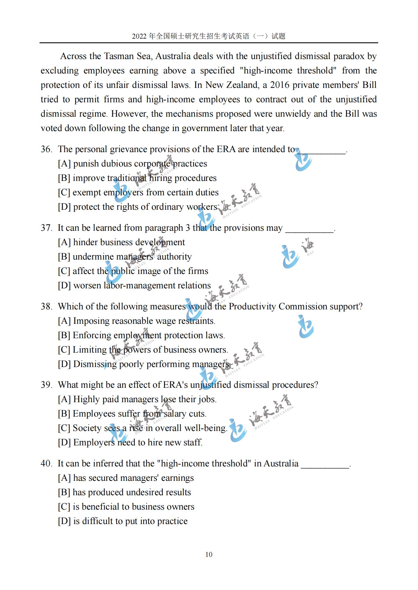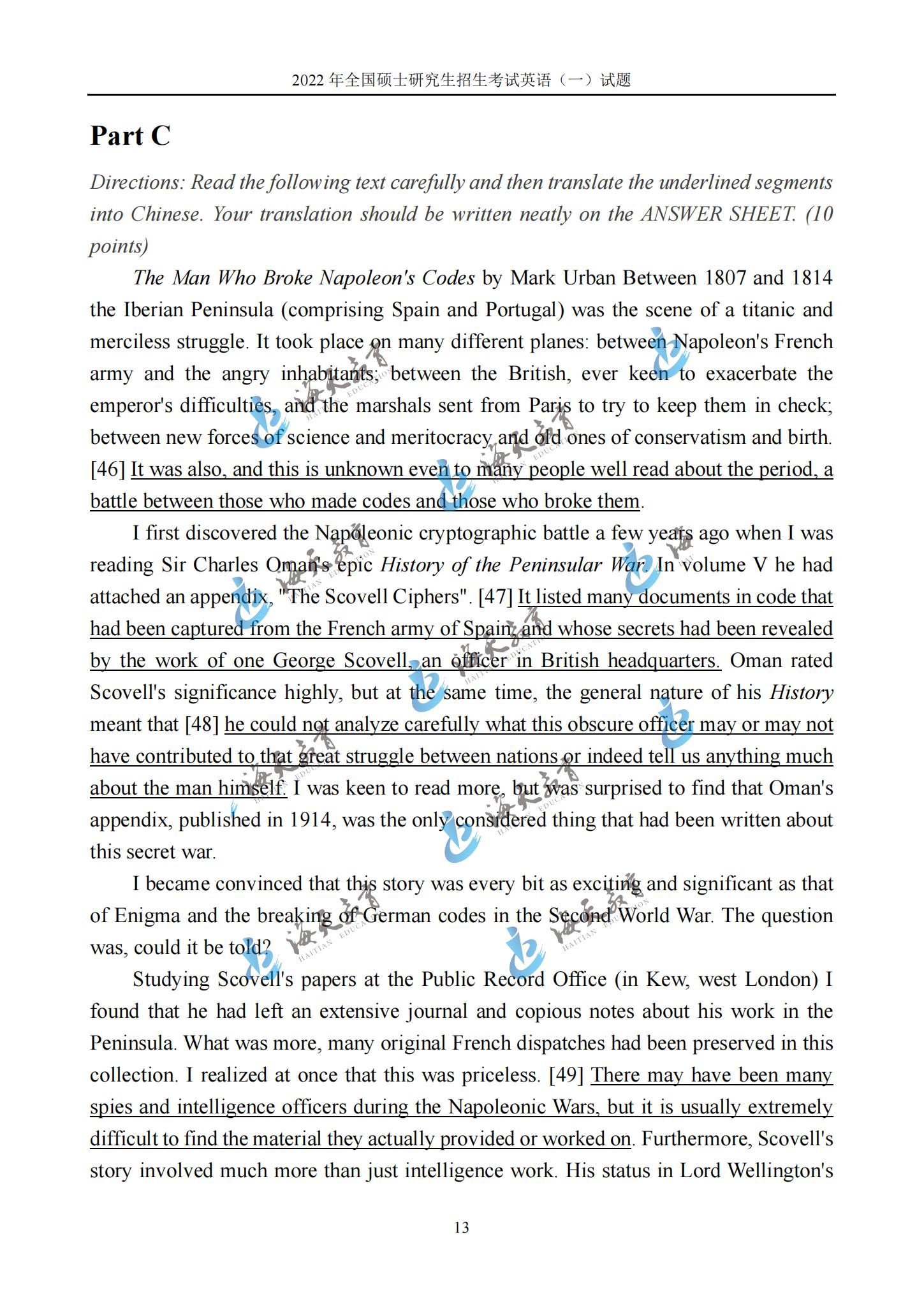 2022考研英语一真题原文完整版
